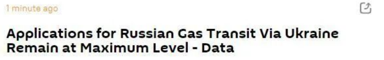 据俄罗斯卫星网报道,目前,欧洲对从乌克兰过境的俄罗斯天然气的申请仍处于最高水平。