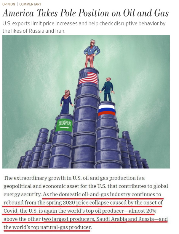 《华尔街日报》◇:随着美国油气行业继续从疫情导致的能源价格暴跌中复苏,美国再次成为最大的油气生产国,其中石油产量比排名紧随其后的沙特阿拉伯和俄罗斯高出近20%。
