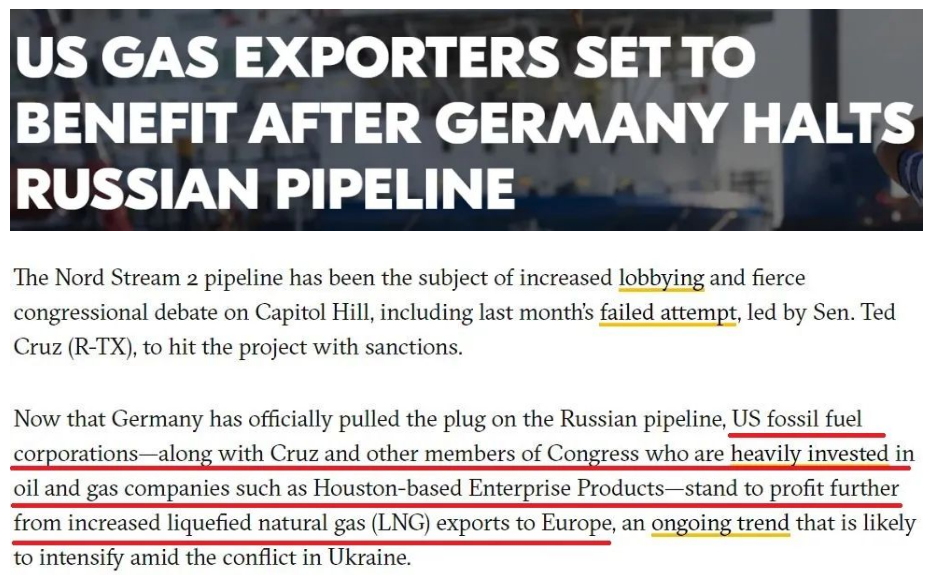 而掐断这么一条互利互惠的管道…▼,正如俄方多次揭露的那样▪▽,美国真实目的在于高价向欧洲兜售更多美国天然气◇。